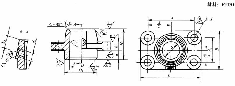 注:1.轴承尺寸见表铜合金轴套中表1,尺寸仅供参考。 2.轴承材料:HT150。 |