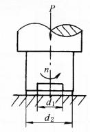 式中 P──轴承承受的轴向力,Nd2──轴承环形工作面外径,mm d1──轴承环形工作面内径,mm Z──环的数目 pP──许用压强MPa,见表“止推滑动轴承的pP、(pv)P值” |