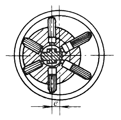 ![]() 当每个柱塞在转子套内伸出及缩入时,产生容积变化,转子旋转时,由于转子与定子环存在有偏心e,所以柱塞在沿定子环内圆滑动的同时,柱塞伸出或缩人。伸出时容积增大,形成局部真空,将油液吸人;缩入时容积减小,将油液压出。其吸油及压油腔由输油轴(配流轴)上的配流槽隔开 |