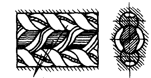 ![]() 一组密封腔 容积密封元件:共轭摆线螺杆、定子 三杆螺杆泵由于三根螺杆具有特殊形状,它们互相接触处形成严密的密封,再加上螺杆有适当的头数和导程,定子(泵体或套筒)与螺杆的接触处有适当的长度和适当的径向间隙,因而使螺杆的凹槽形成一些密闭的容积。当螺杆转动时,这些容积便沿轴向移动——从吸入室沿轴线向压出室移动。这样,在吸入室方面充满螺杆凹槽的油液,在螺杆稍微转动以后便与吸入室隔绝,形成一封闭容积,在螺杆螺纹的作用下被推动沿轴线方向向前移动至压出腔,再通过压力油管输送到液压系统中去。如同螺母在转动螺杆上的走动情况一样,油液在螺杆泵内是作匀速直线运动的(设螺杆作匀速转动),而且这些油液彼此间没有相对运动,即无搅动地移动,不能变量 |
