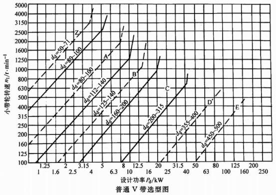 | 2 | 选定带型 | 根据Pd和n1由图1、图2或图3选取 | n1——小带轮转速(r/min) | ||