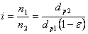 n2——大带轮转速(r/min) dp1——小带轮的节圆直径(mm) dp2——大带轮的节圆直径(mm) ε——弹性滑动率 通常带轮的节圆直径可视为基准直径 |