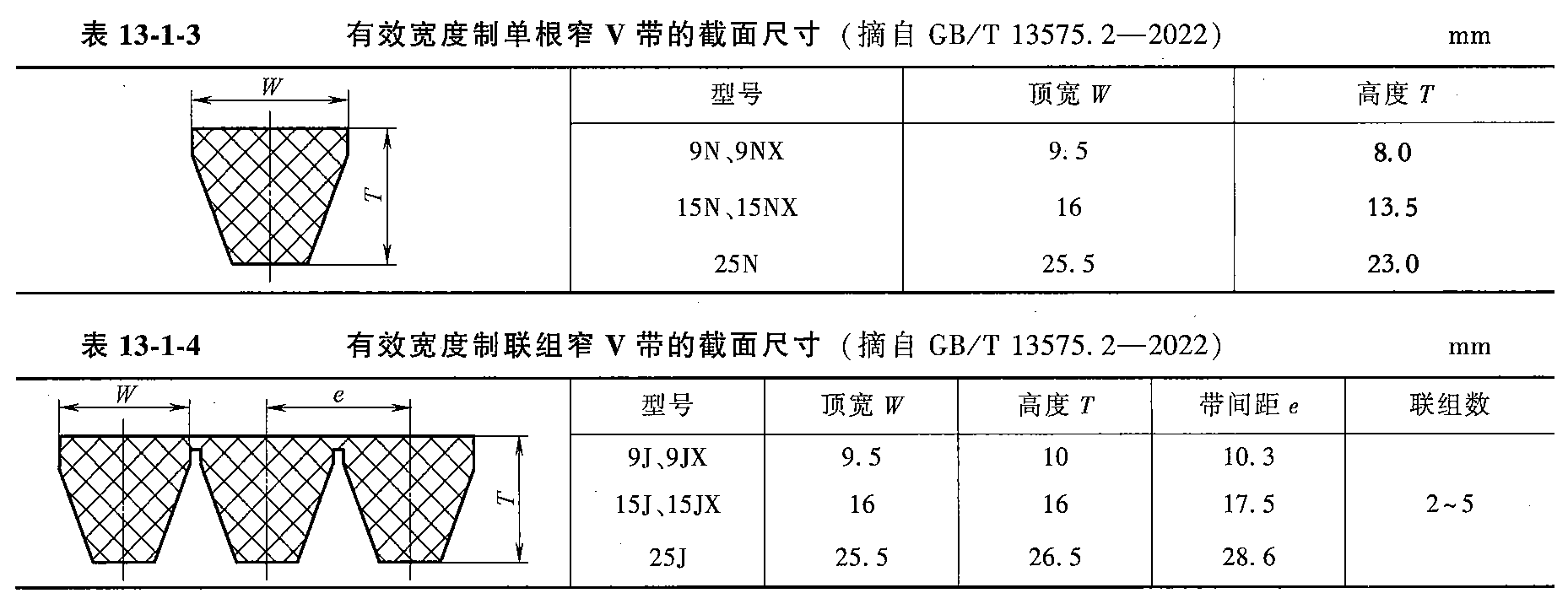 有效宽度制窄V带截面尺寸(摘自GB/T 13575.2—2022)