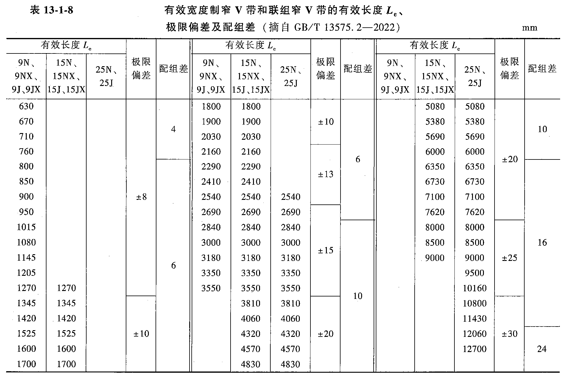 有效宽度制窄V带有效长度、极限偏差及配组差(摘自GB/T 13575.2—2022)