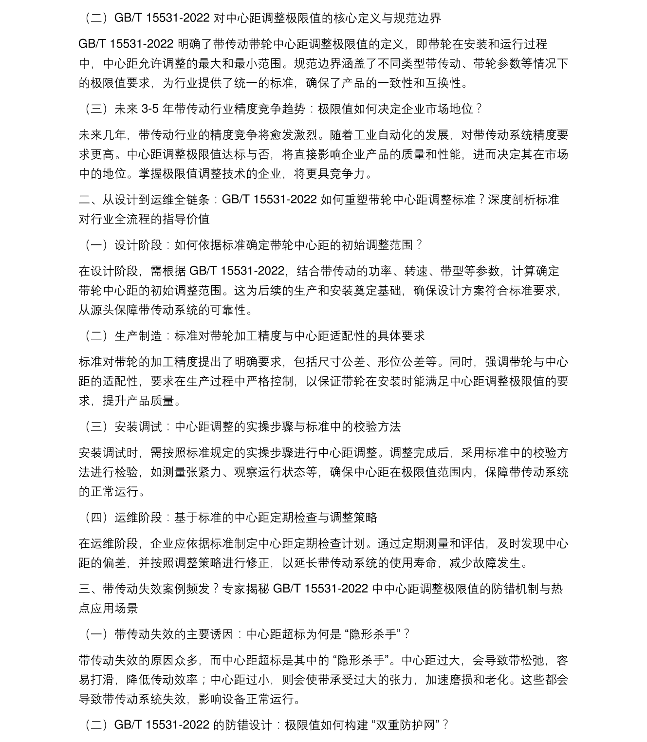 新解读《GBT 15531-2022带传动 带轮 中心距调整极限值》