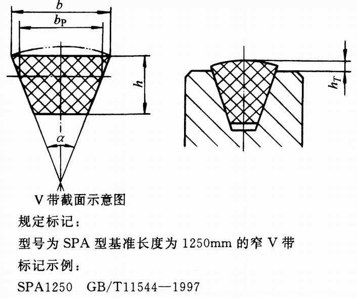 | 型号 | 节宽bp | 顶宽b | 高度h | 楔角α | 露出高度hT | 适用槽形的基准宽度 | |