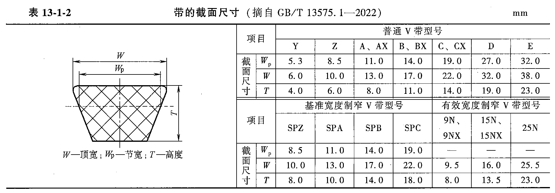 普通V带的截面尺寸(摘自GB/T 13575.1-2022)