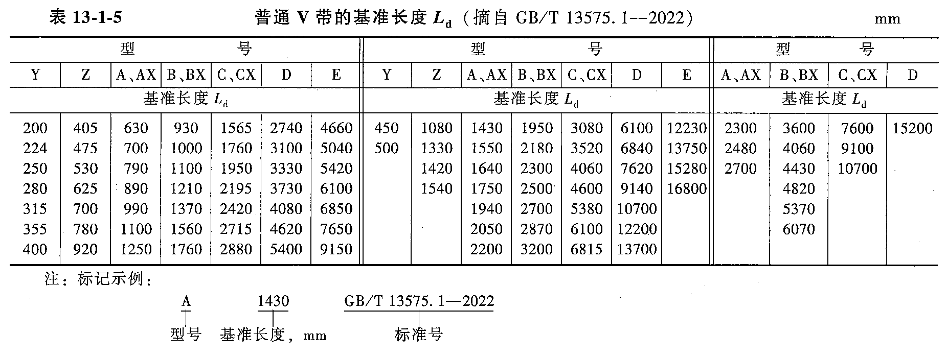 普通V带的基准长度Ld(摘自GB/T 13575.1-2022)
