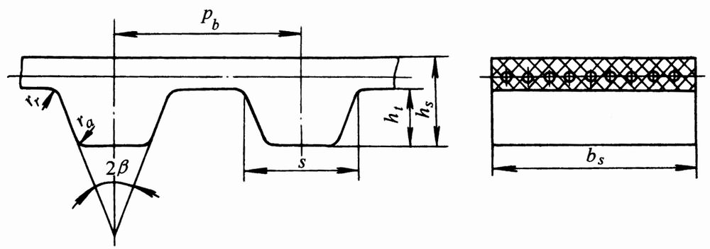 梯形齿同步带有两种尺寸制,节距制和模数制。节距制是以英寸制节距pb为准,我国现采用节距制。