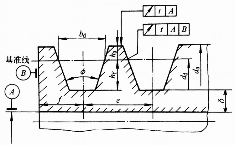 | 有效直径基本值de | 径向圆跳动t1 | 轴向圆跳动t2 |