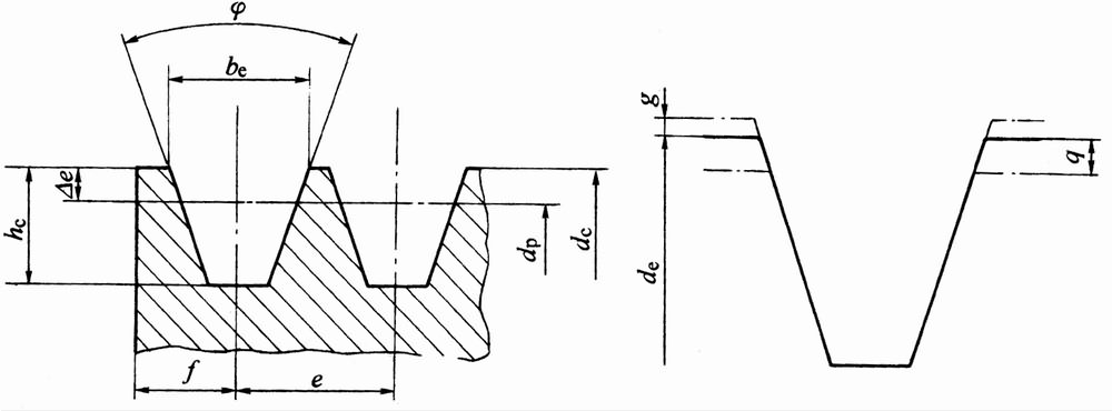 | 有效直径de/mm | 槽轮角φ±0.5° | 36° | de≤90 | - | - |