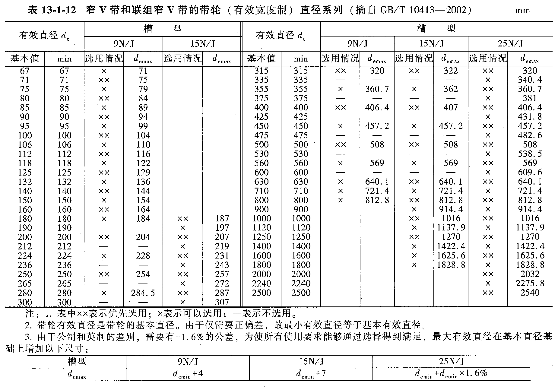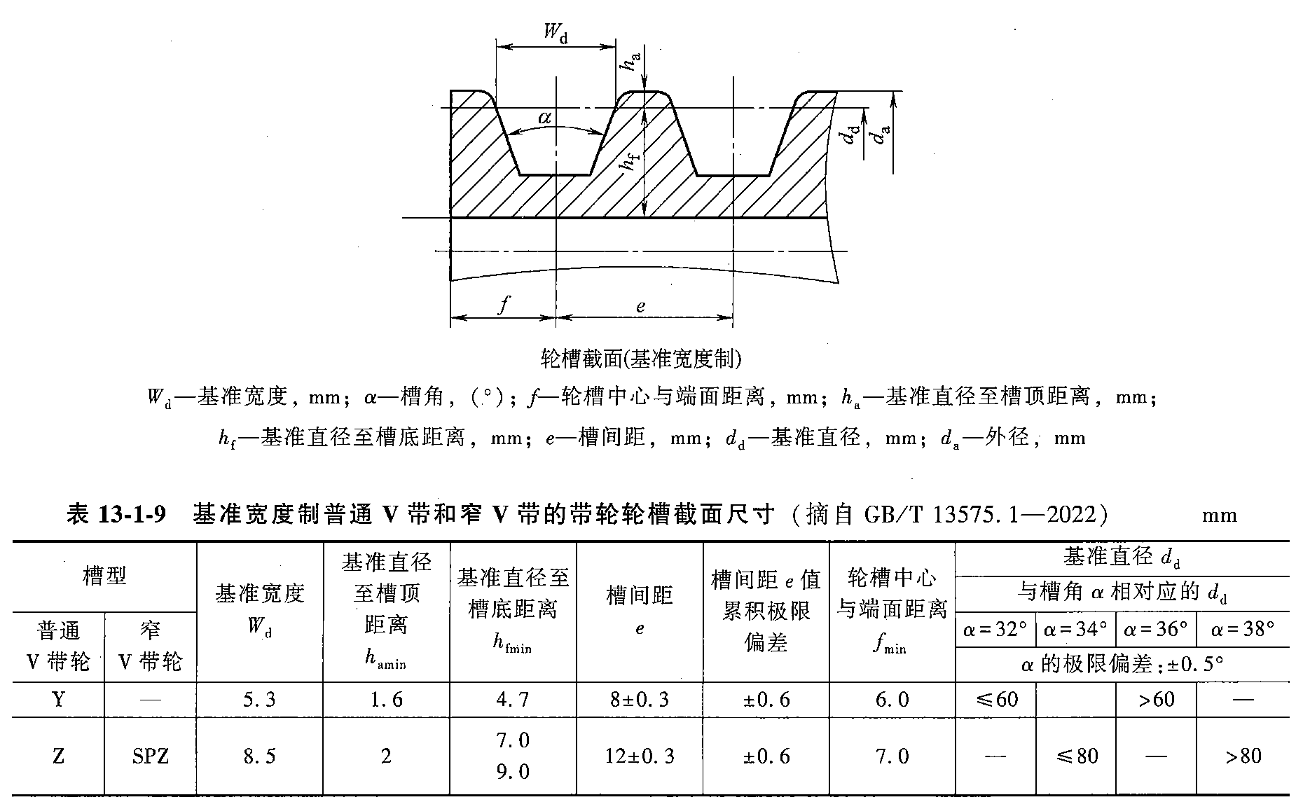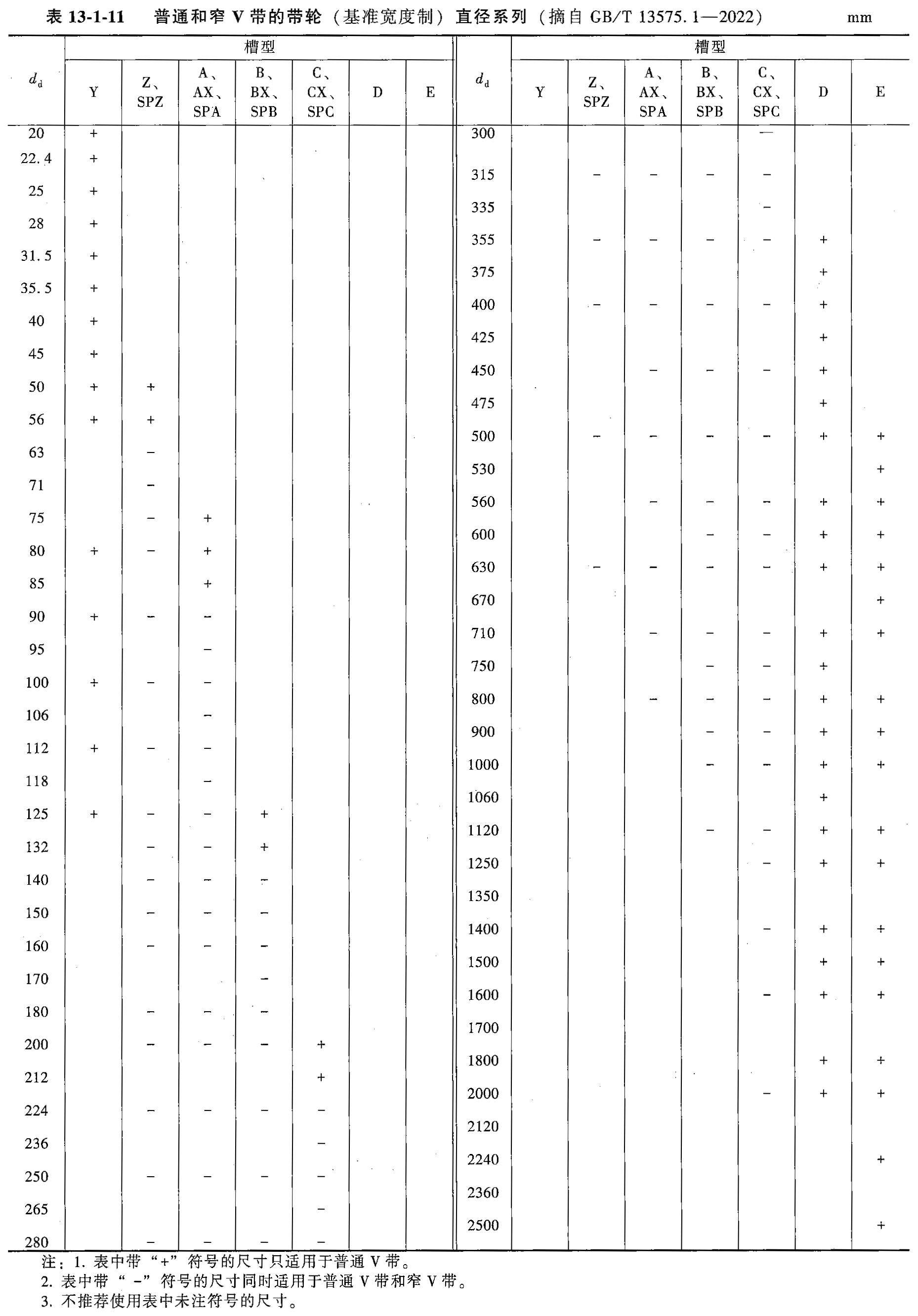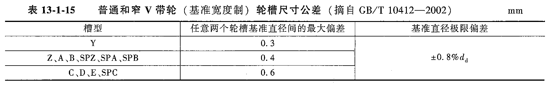 带轮轮槽截面尺寸与直径系列