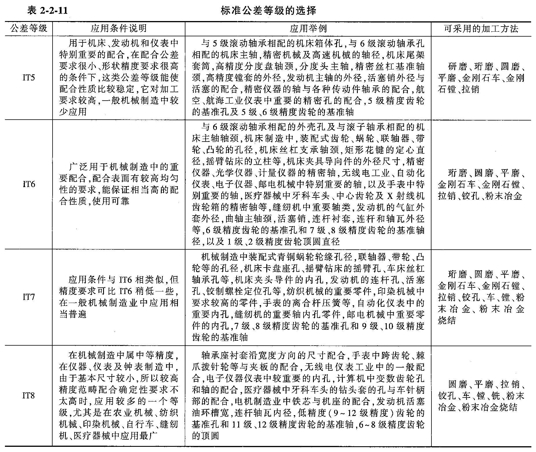 标准公差等级的使用范围和选择