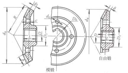当小端齿根圆角离键槽顶部的距离δ<1.6m(m为大端模数)时(图b),齿轮与轴作成整体(图a)