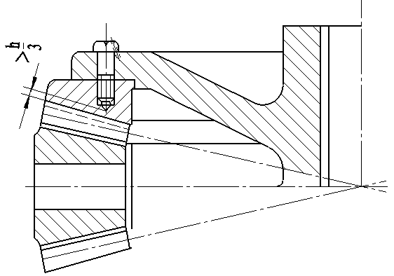 曲线齿锥齿轮的轮毂与齿根的延长线不得相交,避免切齿时相碰 |