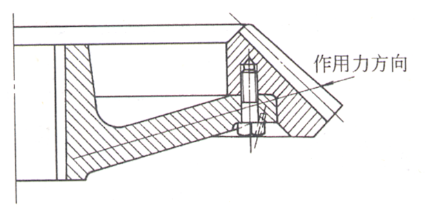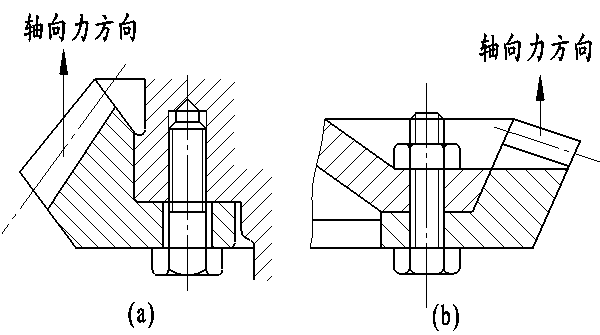 当轴向力朝向锥顶时,为使螺钉不承受拉伸力,应按图示方向联接。a图常用于双支承式结构;b图用于悬臂式支承结构 | |