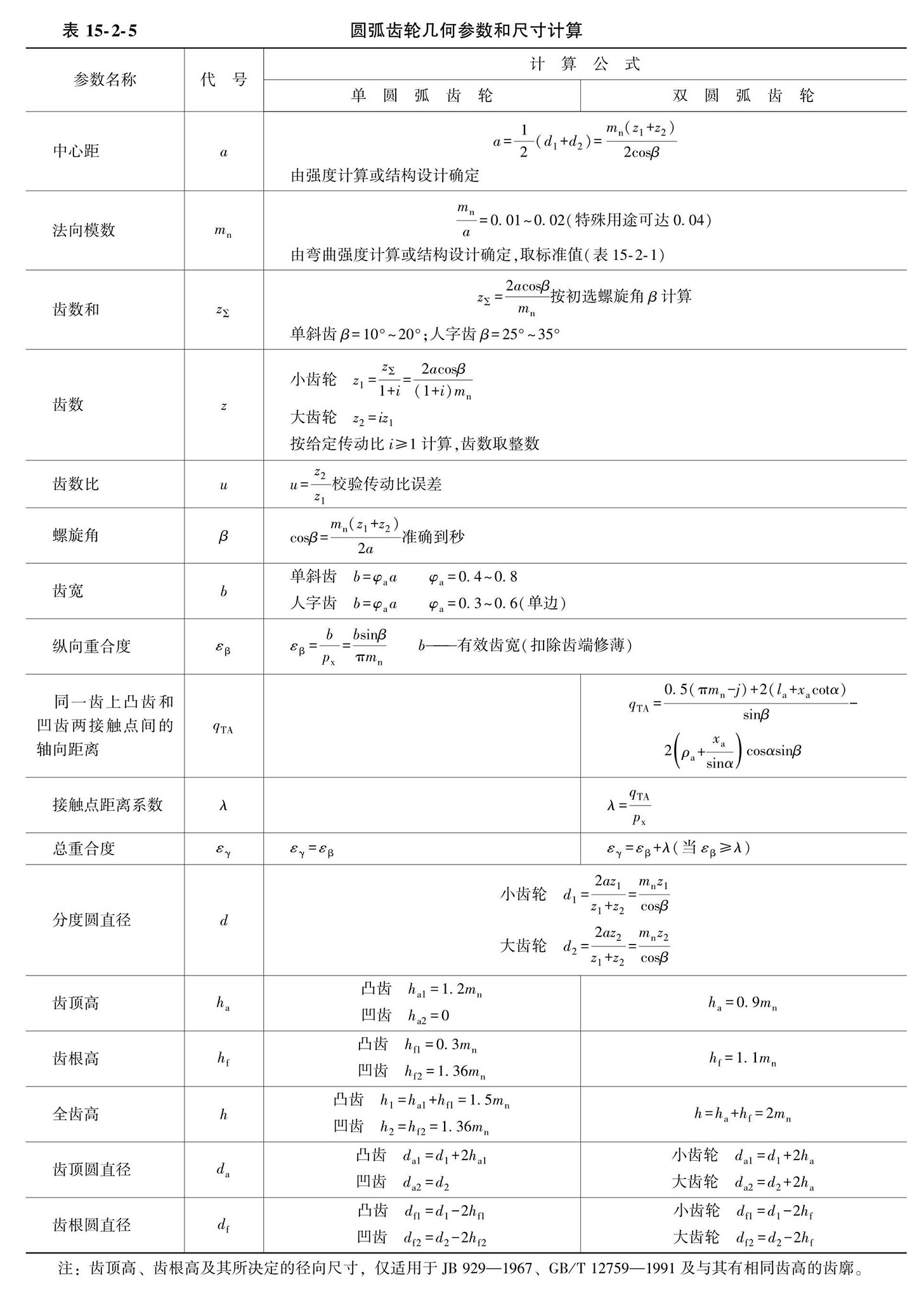 圆弧齿轮的几何参数和尺寸计算