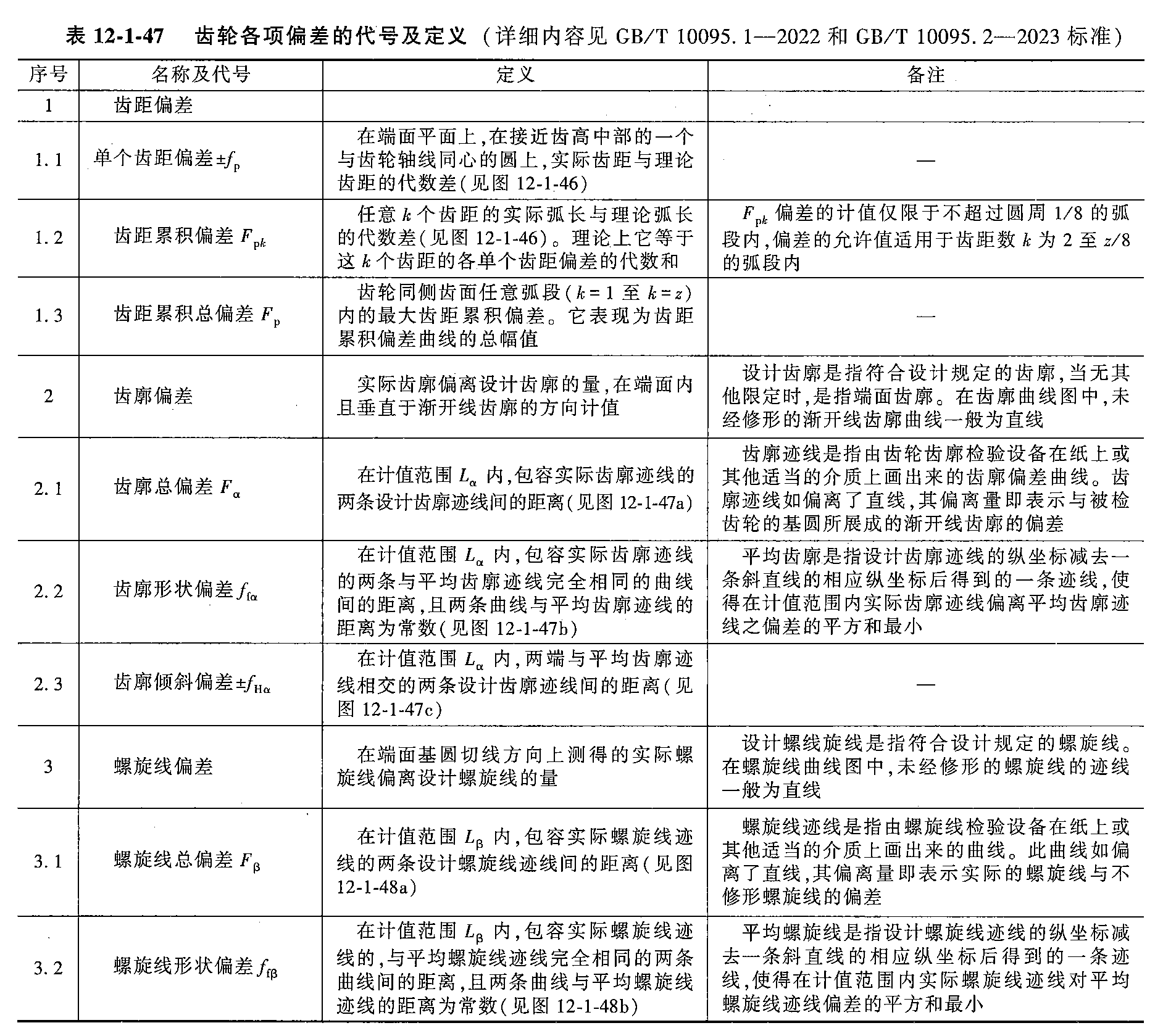 齿轮偏差的代号及定义