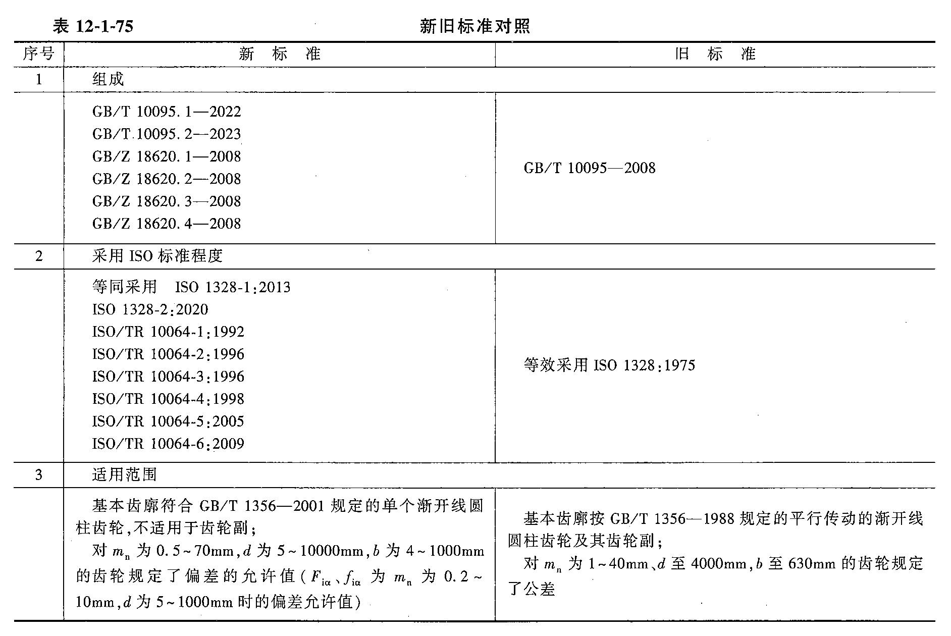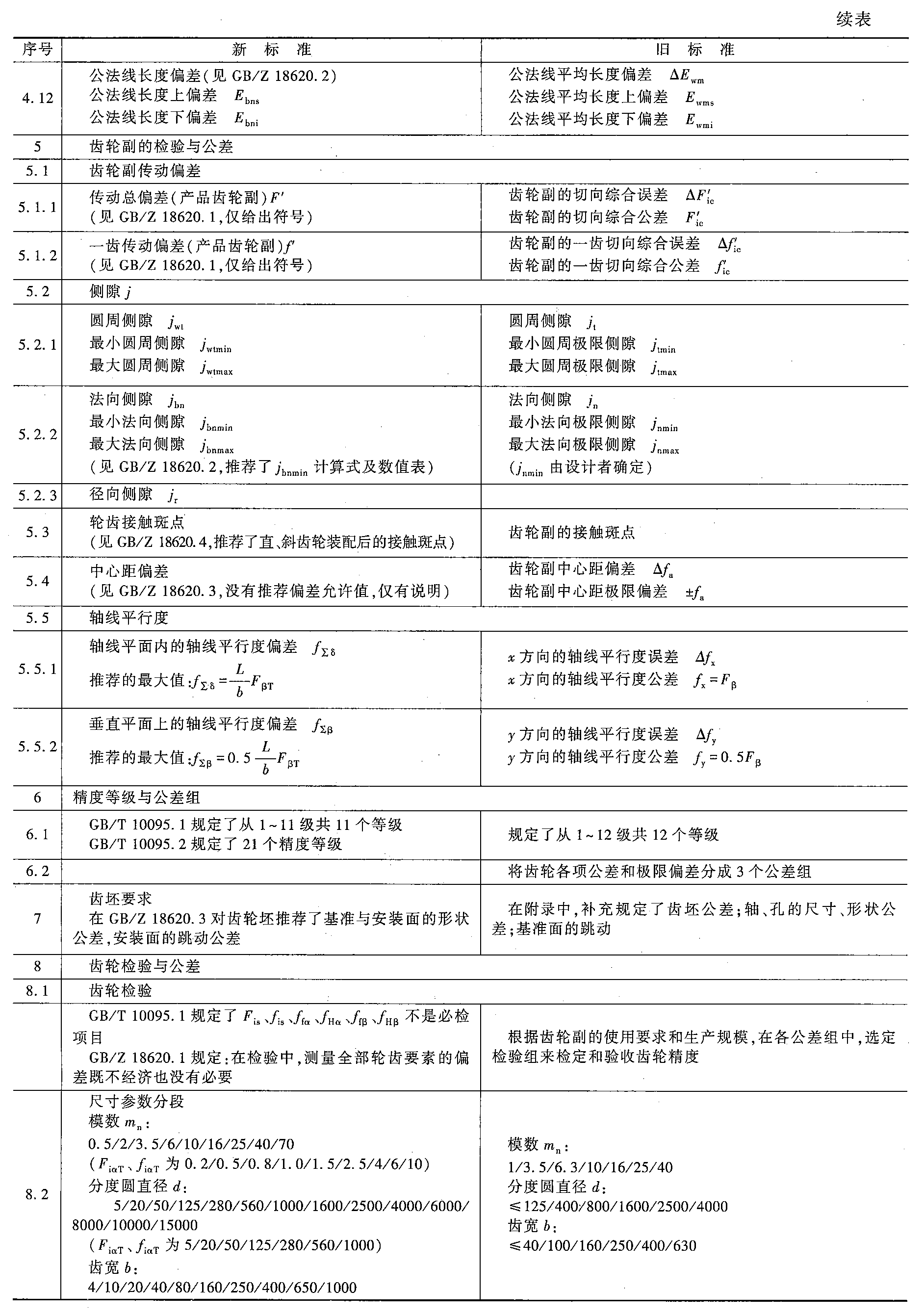 新旧标准对照