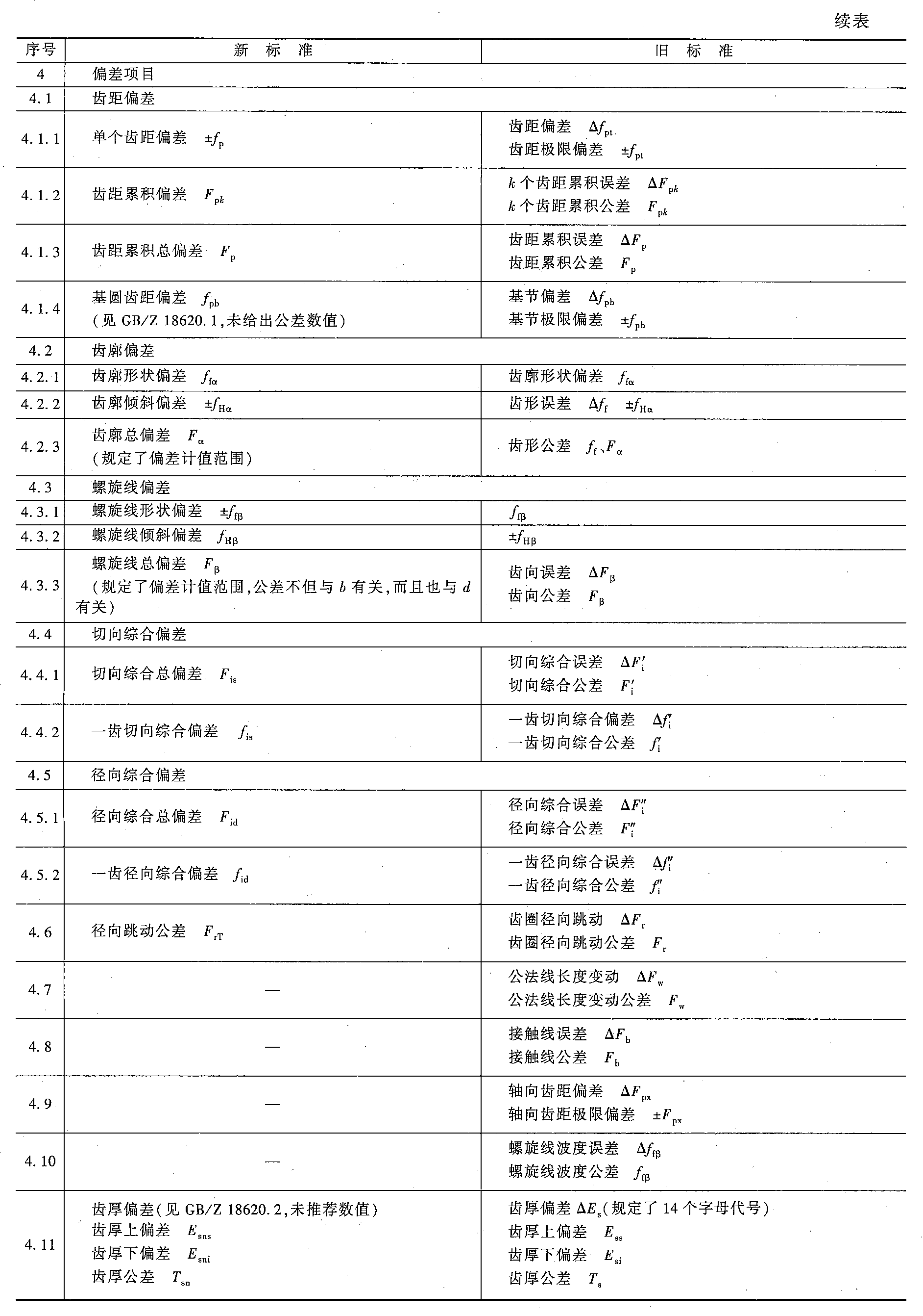 齿轮偏差的代号及定义