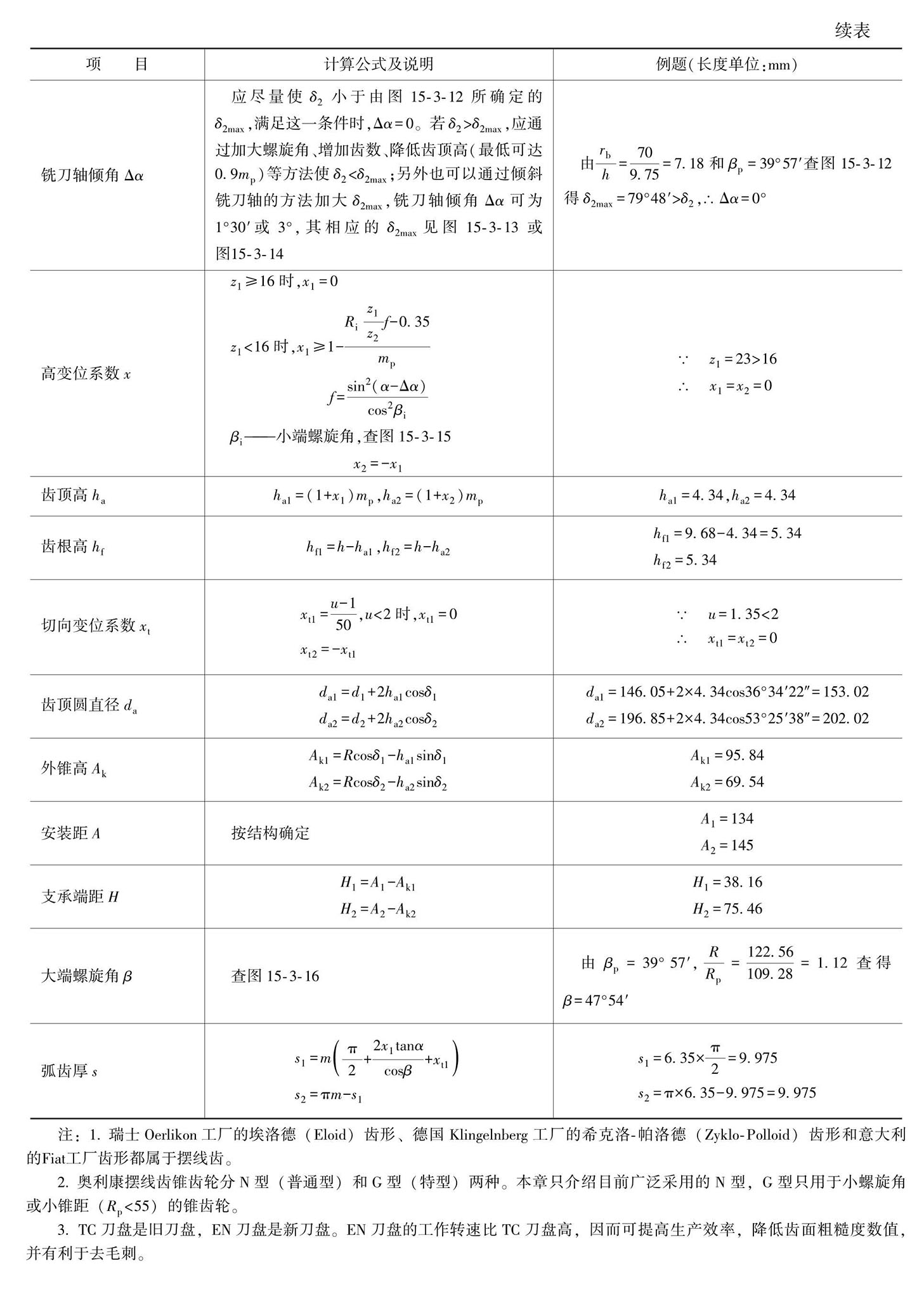 摆线等高齿锥齿轮传动的几何计算
