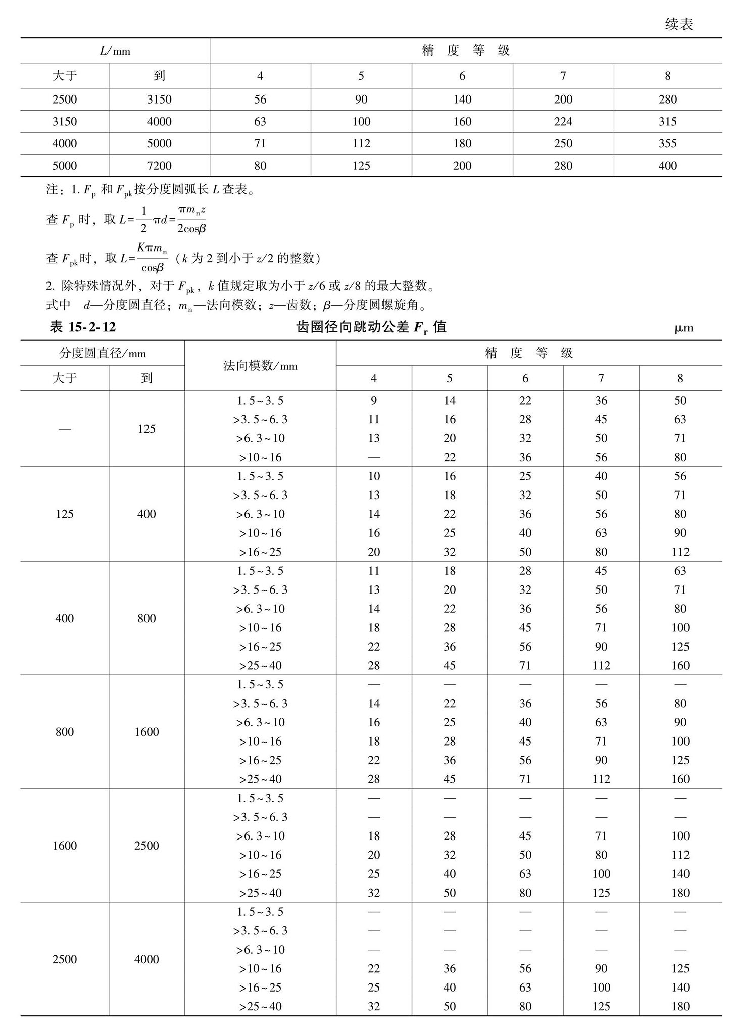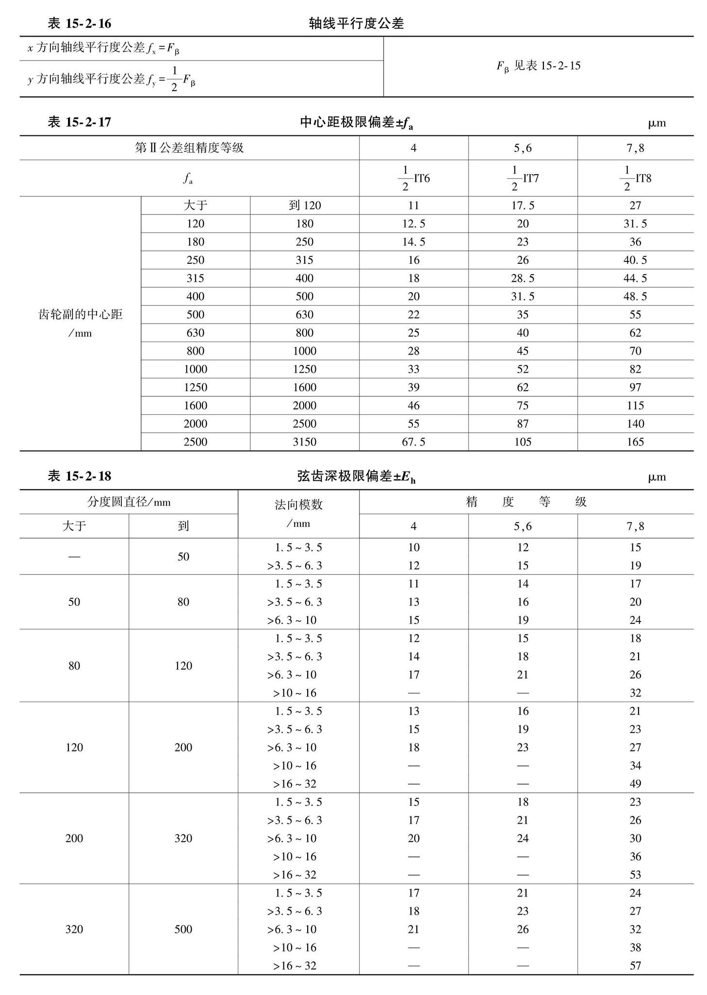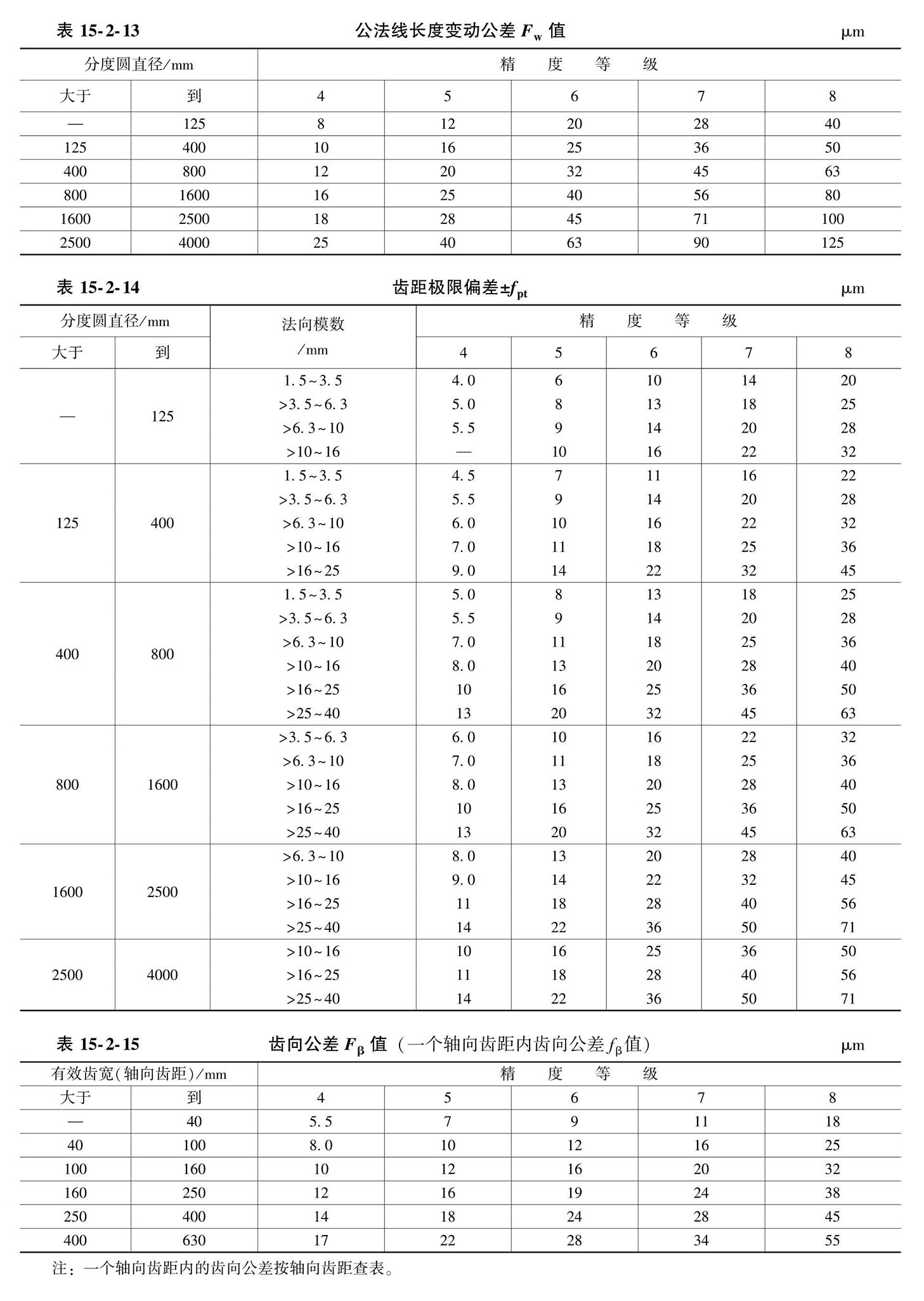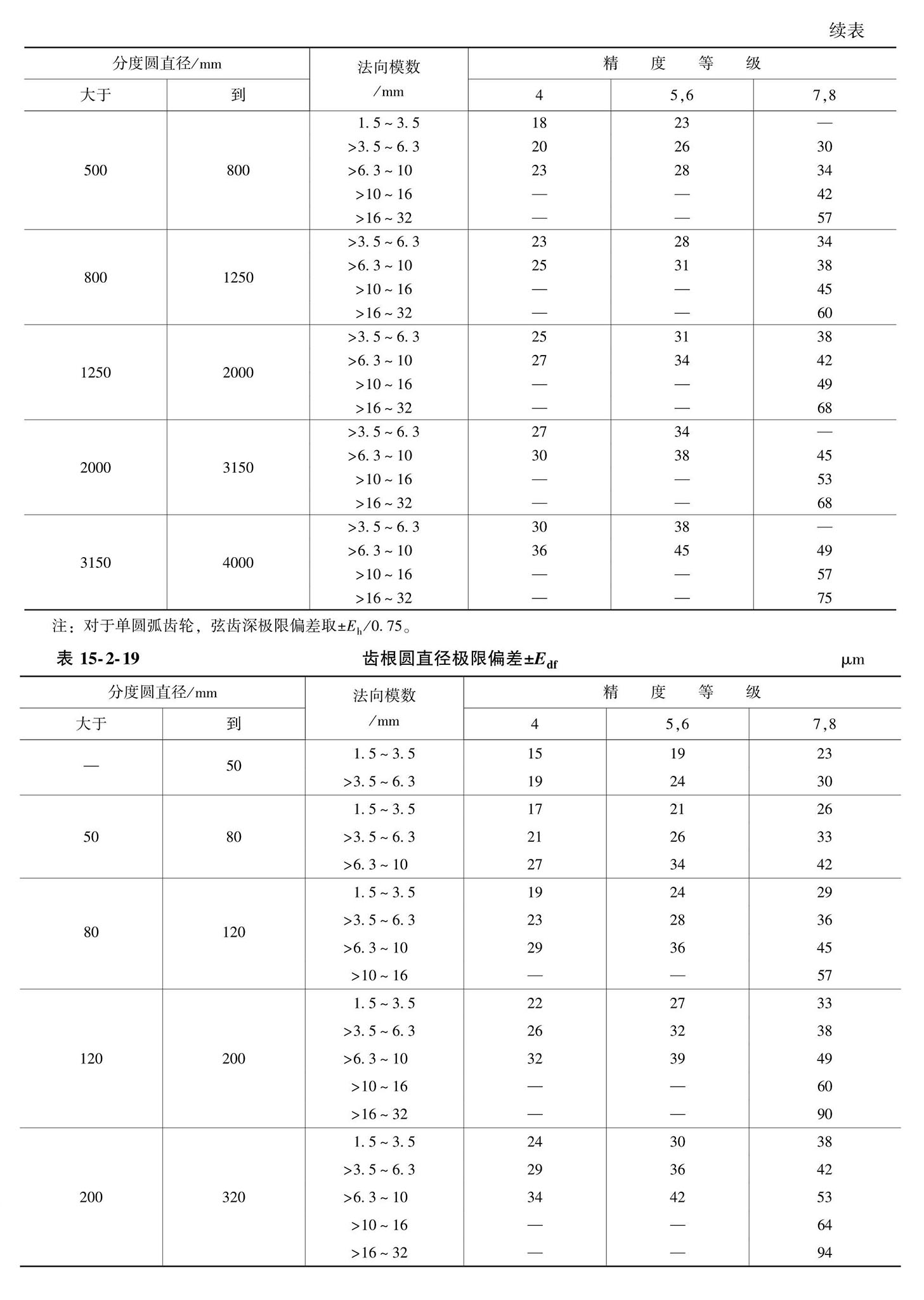 检验项目的极限偏差及公差值(摘自GB/T 15753-1995)