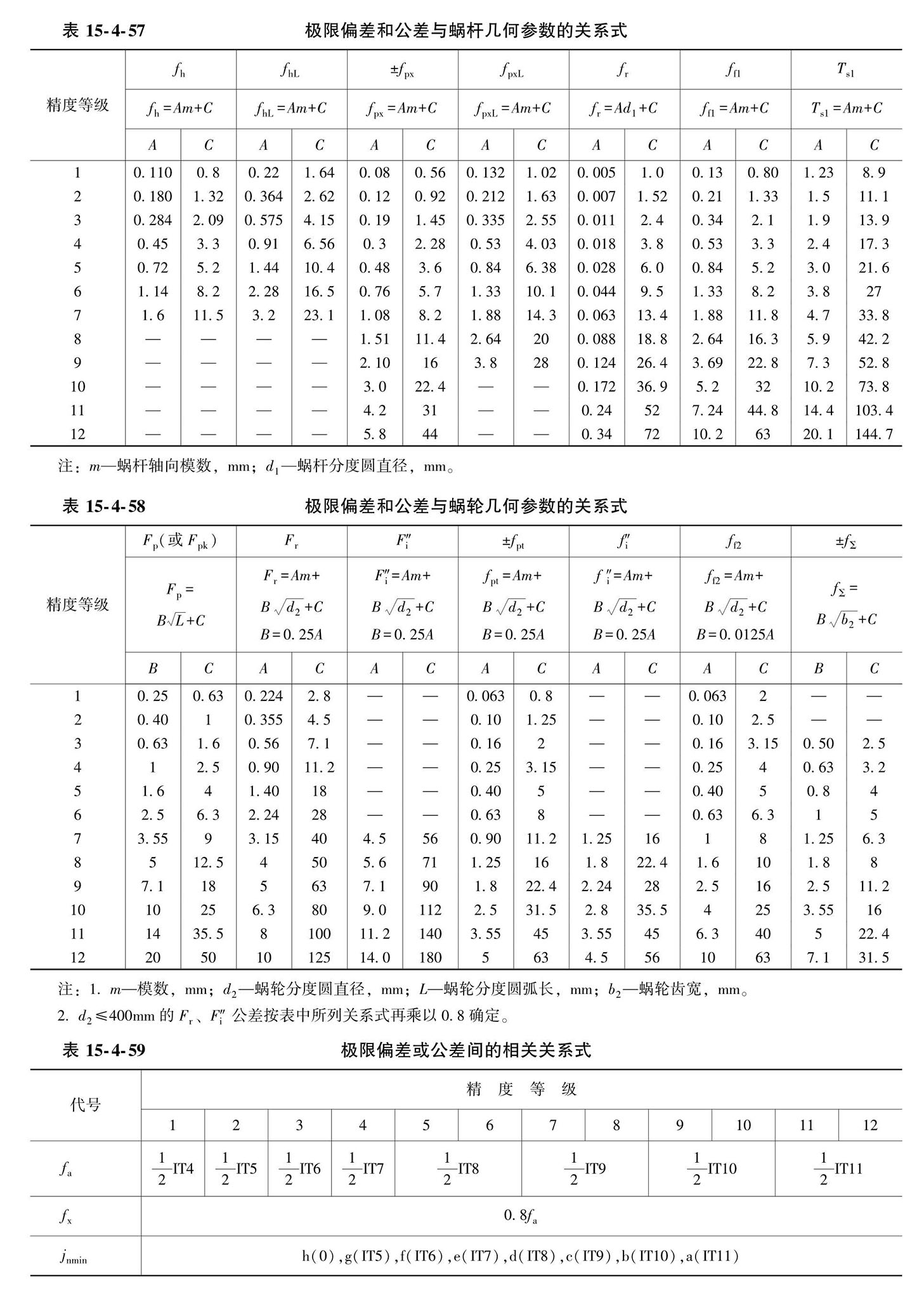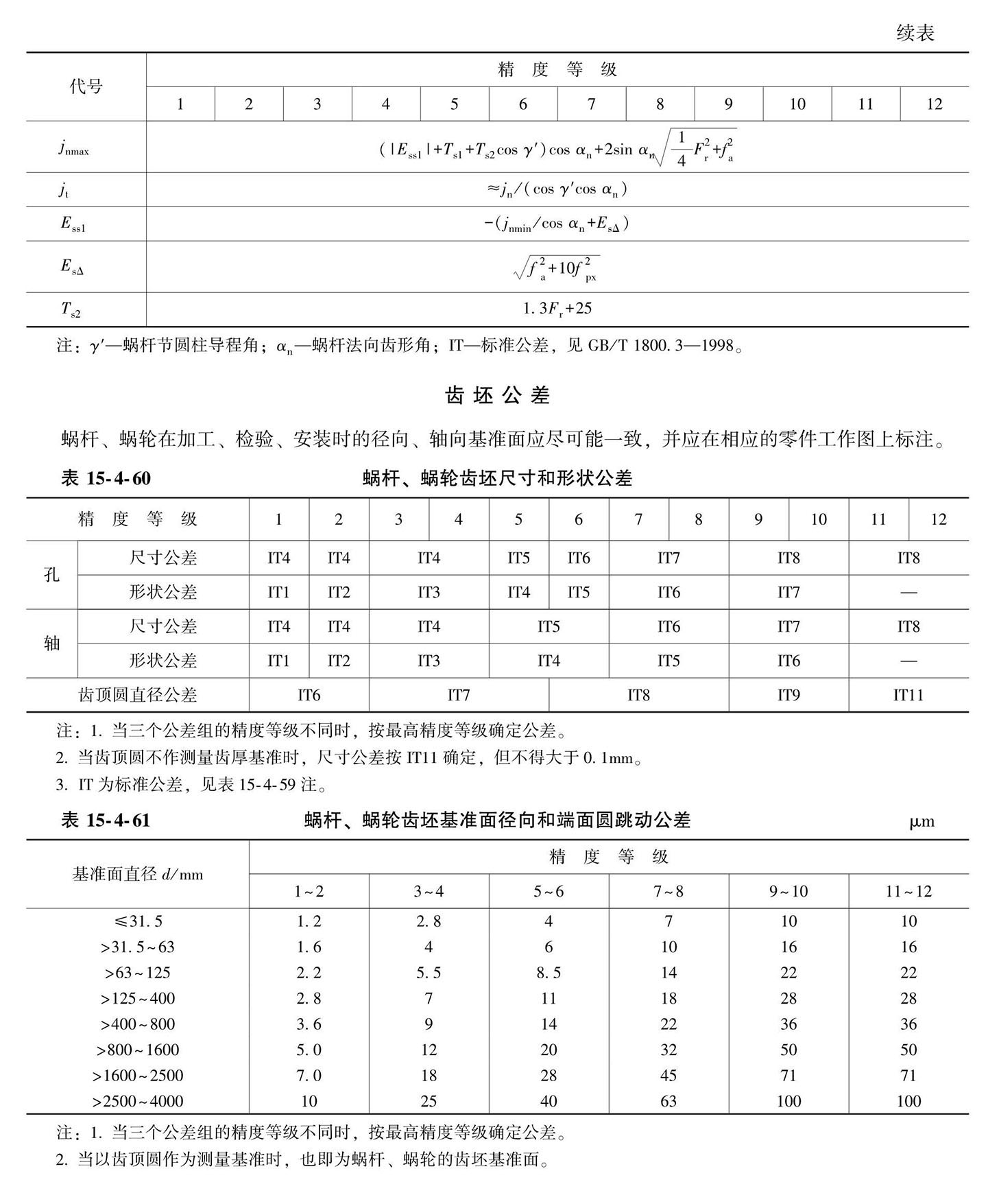 直廓环面蜗杆、蜗轮精度(摘自GB/T 16848—1997)