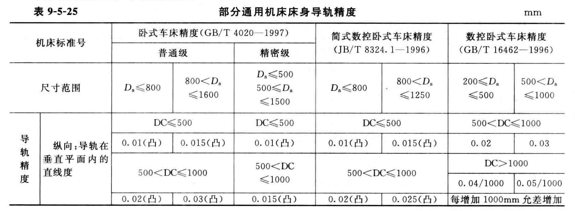 部分通用机床床身导轨精度见 部分通用机床床身导轨精度(表9-5-25)。