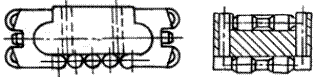 任何能承受径向力的滚动轴承(或轴承组)都可以作为这种导轨的滚动元件 轴承的规格多,可设计成任意尺寸和承载能力的导轨,导轨行程可以很长 很适合大载荷、高刚度、行程长的导轨,如大型磨头移动式平面磨床、绘图机等导轨 |
