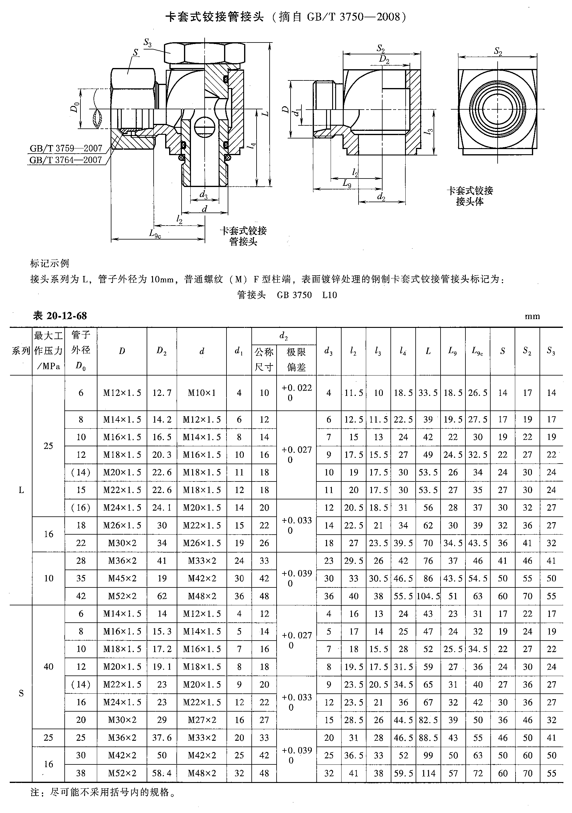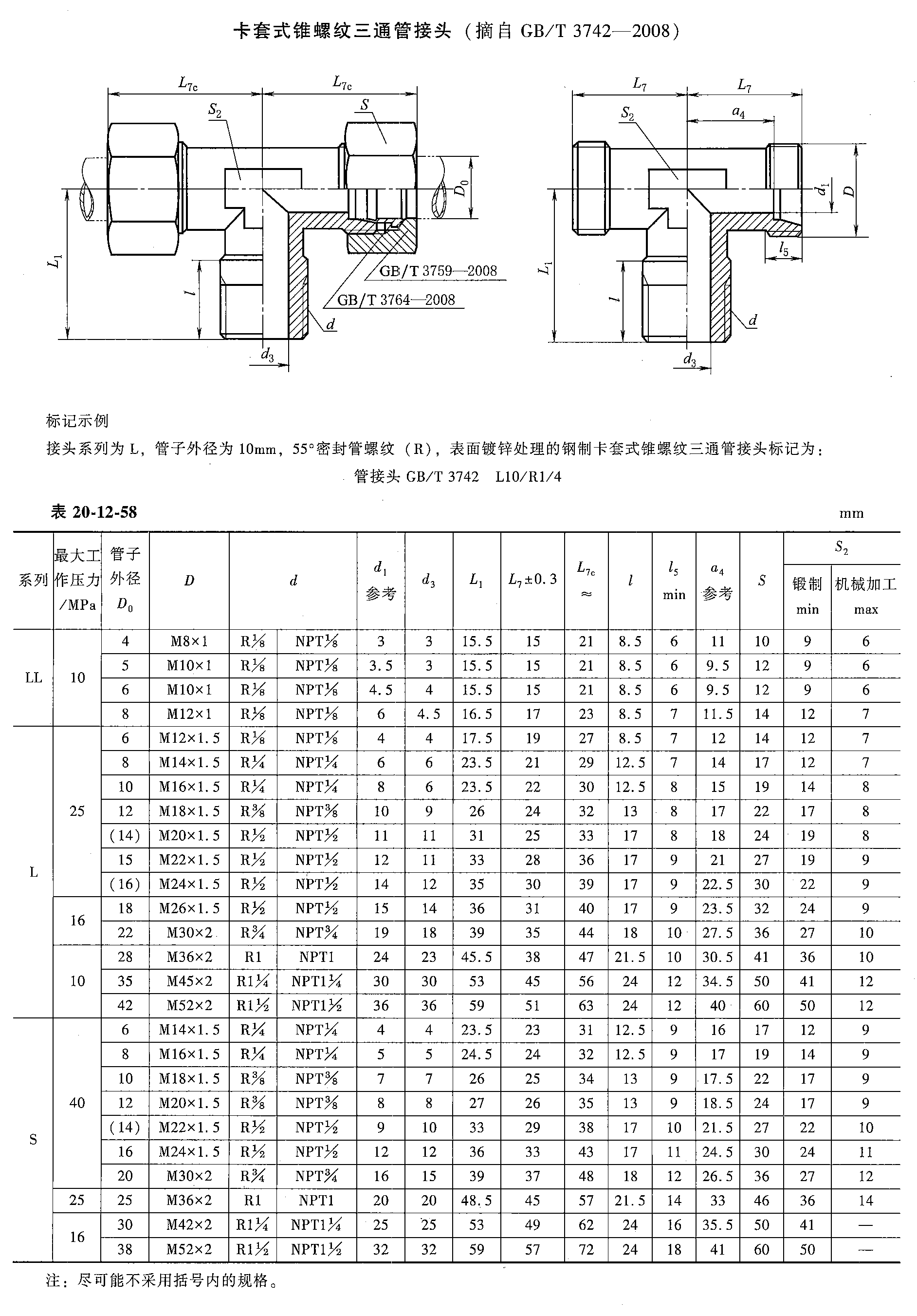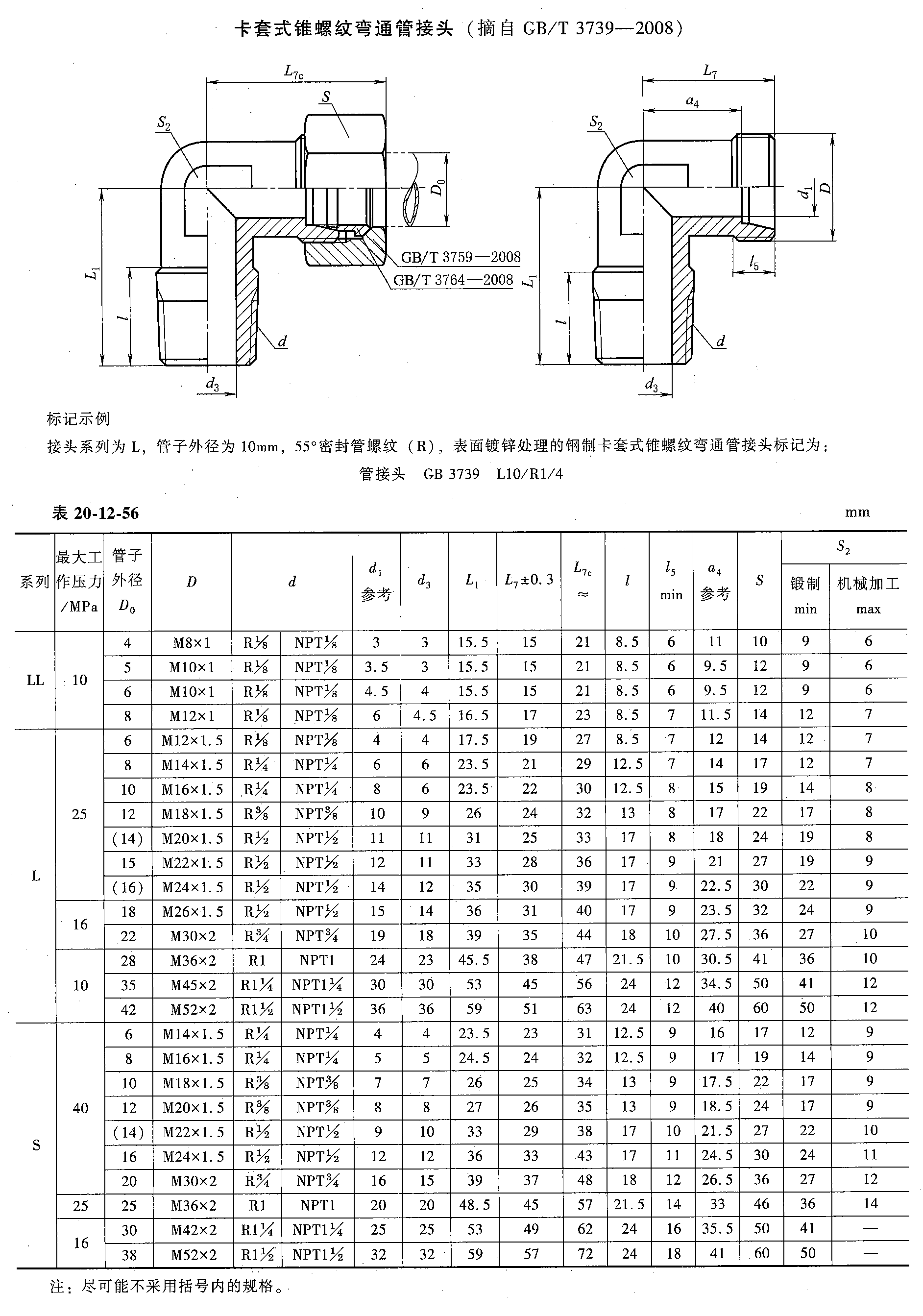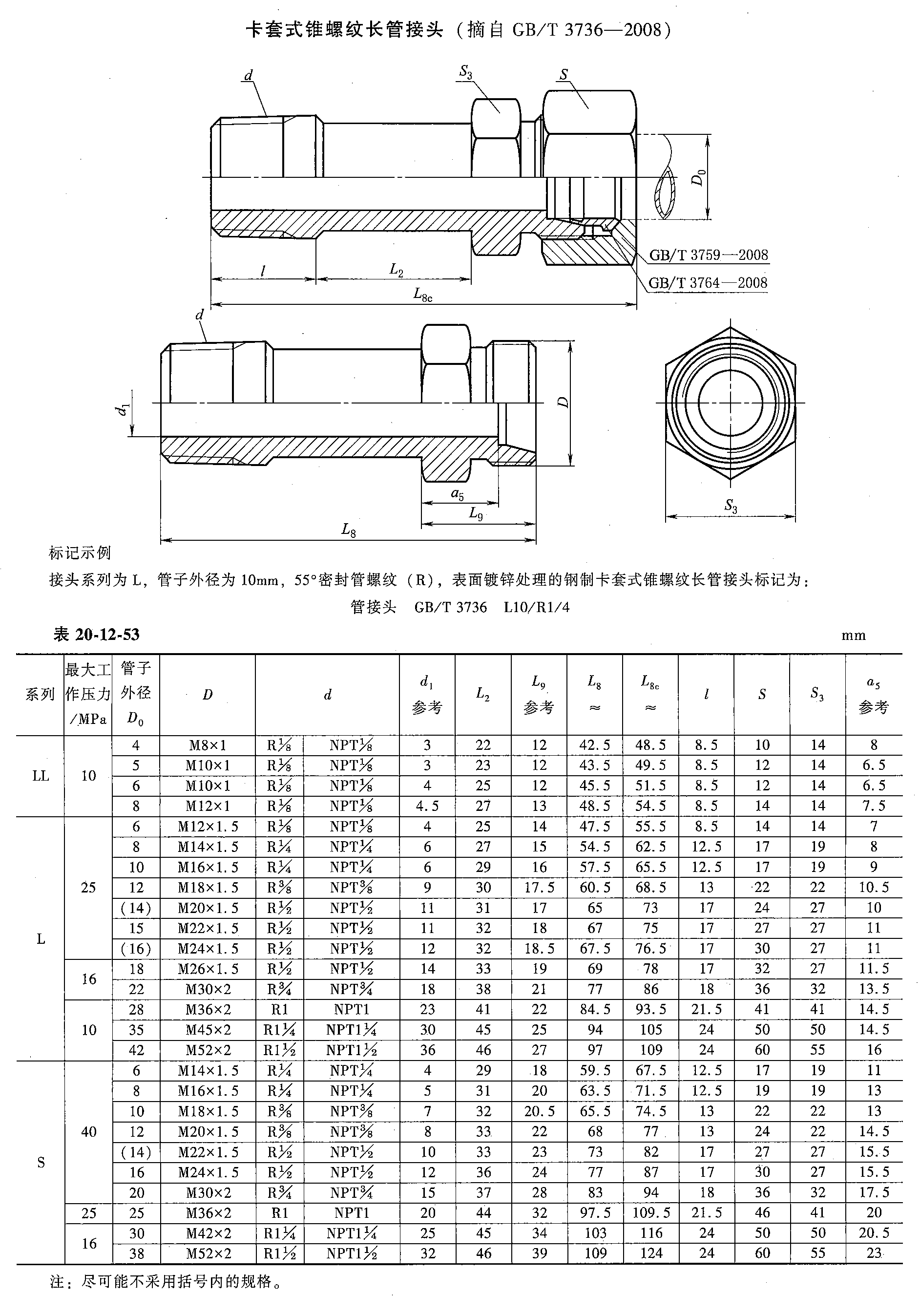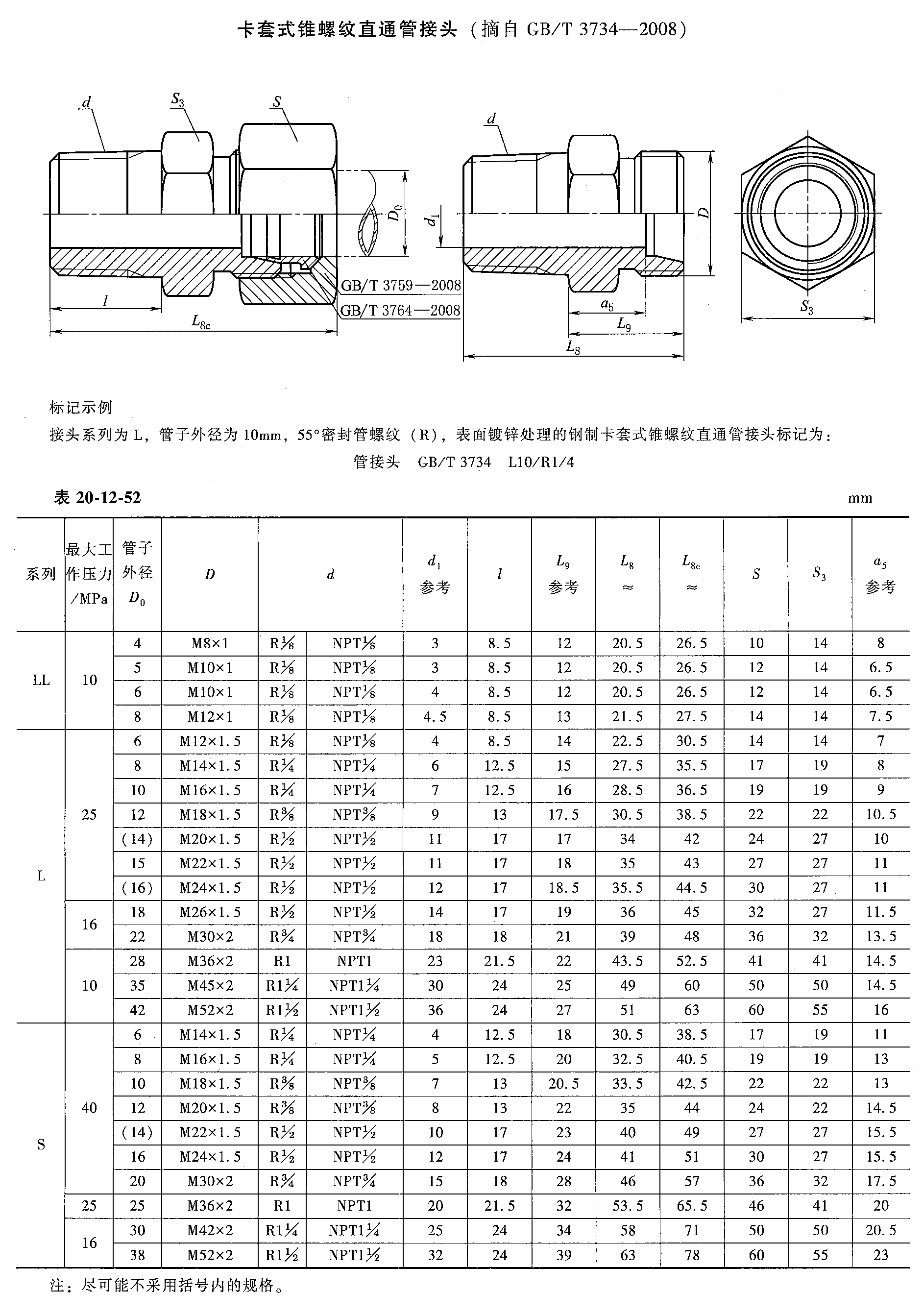 液压管接头的标识与命名